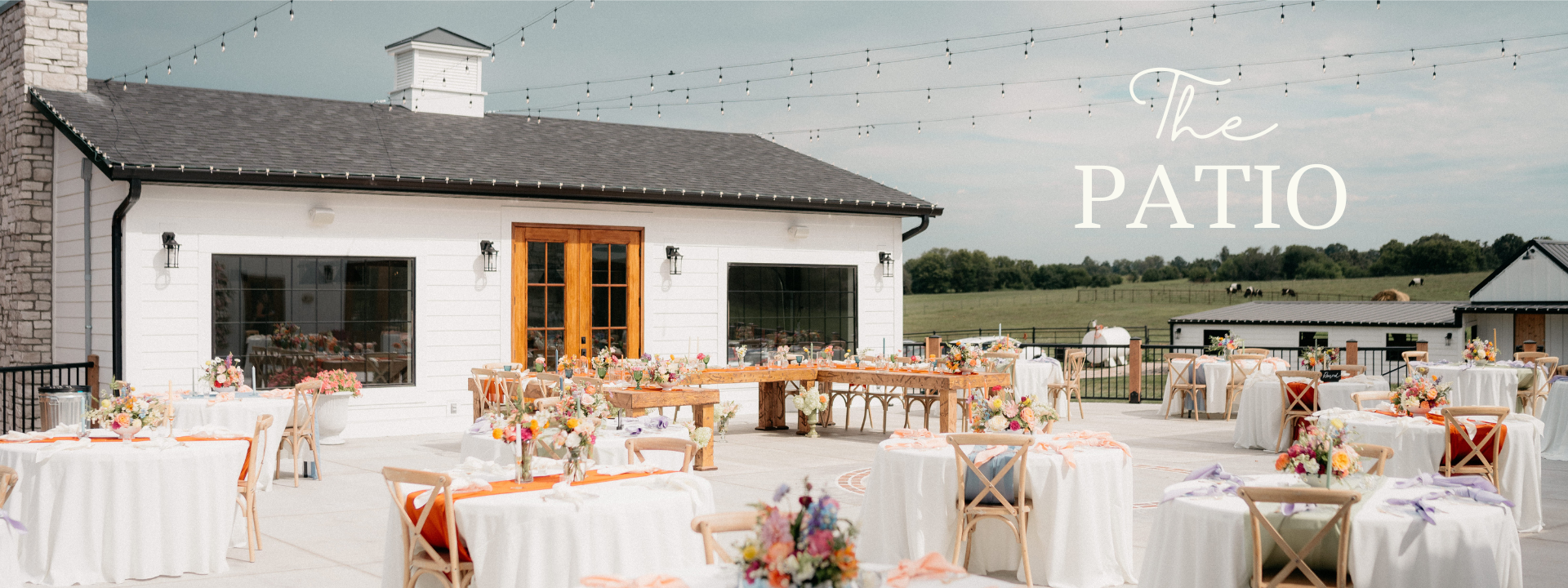 The Patio is an inviting outdoor space designed to host unforgettable wedding receptions. This space is included in our wedding packages! With a capacity to accommodate up to 150 guests, it provides ample room for dining, mingling, and celebrating under the open sky. The layout is perfect for a DJ setup and a designated dance floor, allowing guests to enjoy music and dancing in a festive atmosphere!
