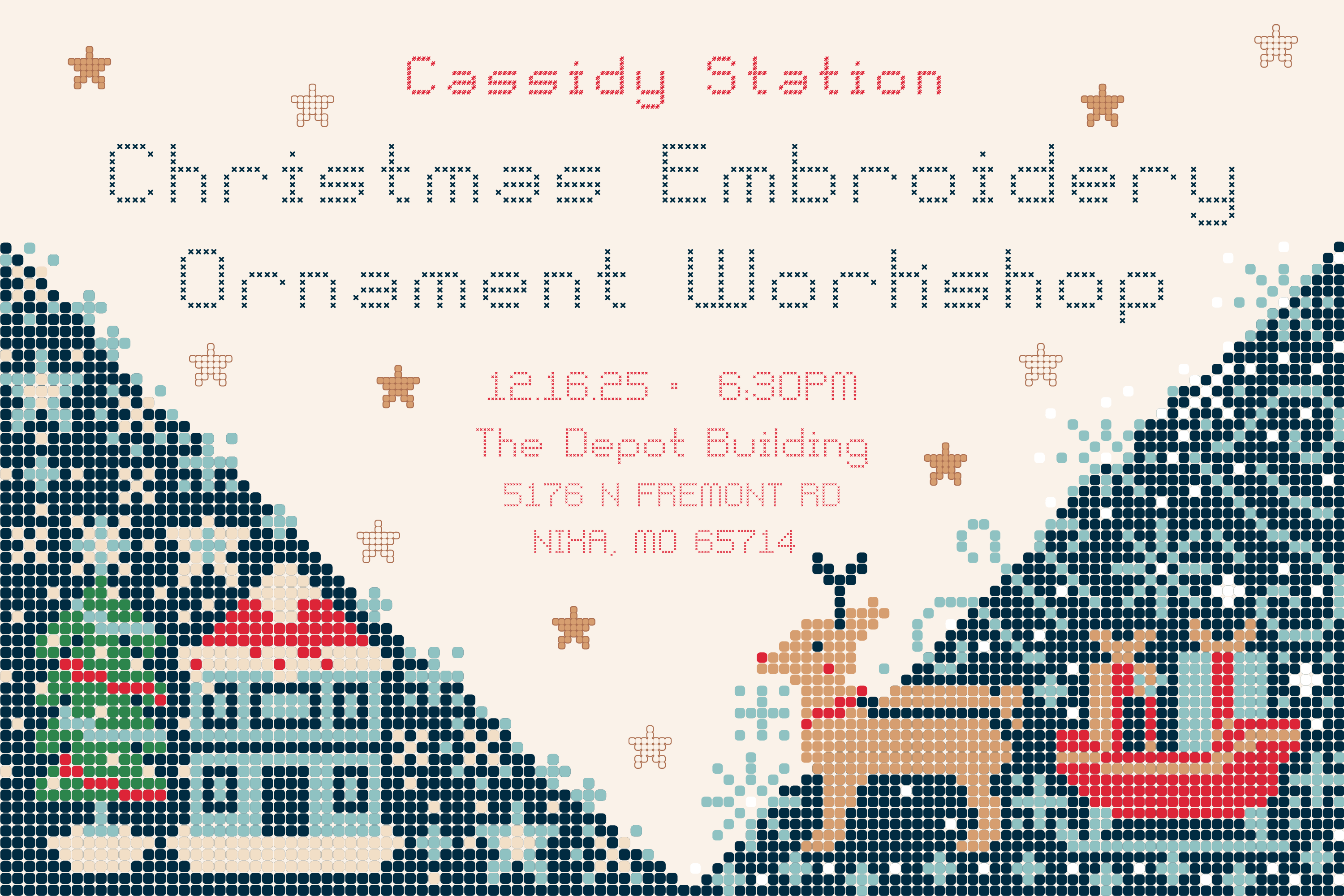 Get tickets hereGet into the holiday spirit with our Christmas Embroidery Ornament Workshop! Join us for a delightful evening of creativity and community, where you'll learn to create beautiful, handmade ornaments to adorn your tree or give as heartfelt gifts.