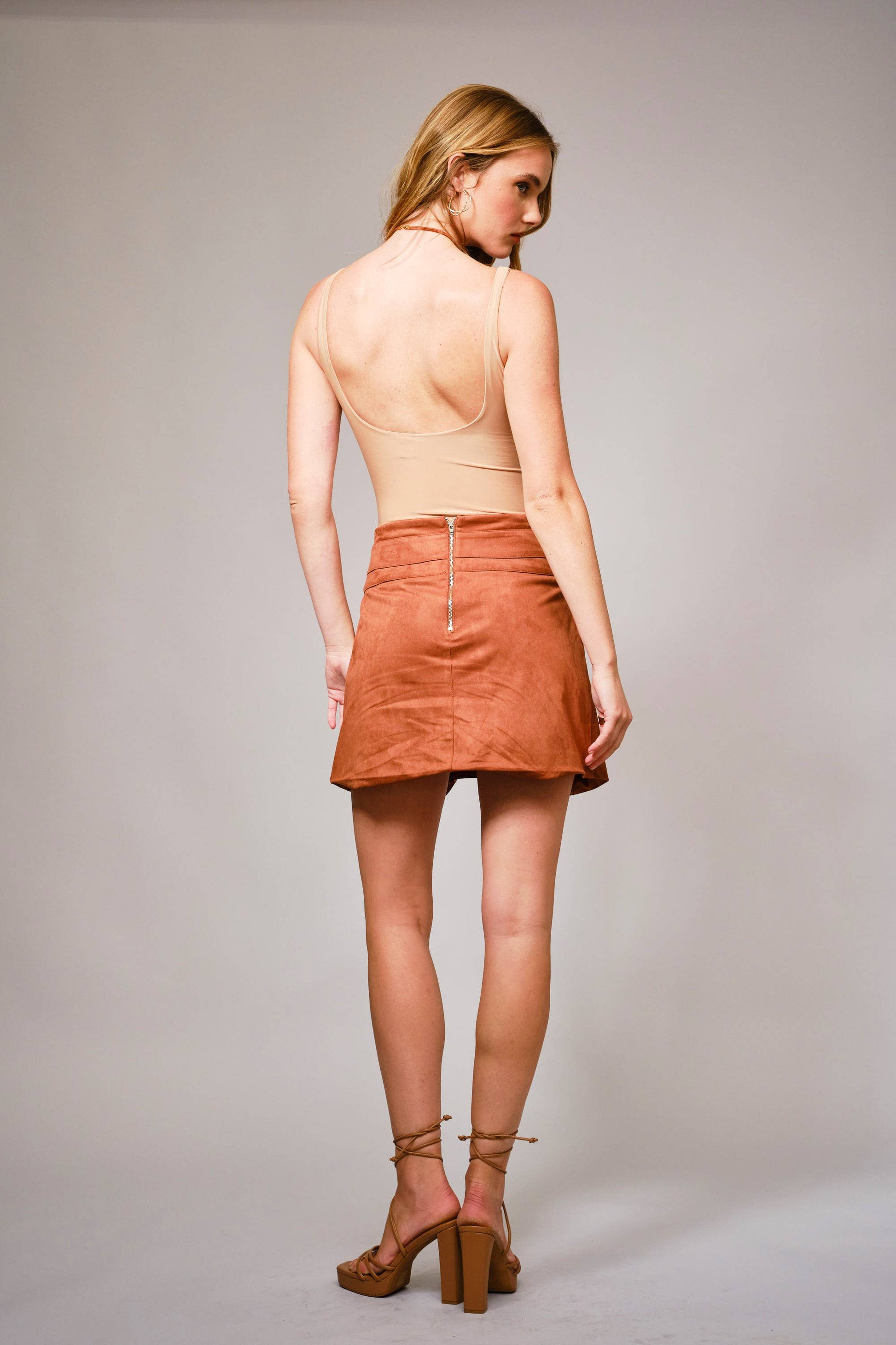Suede Ring Tassel Tie Mini Skirt