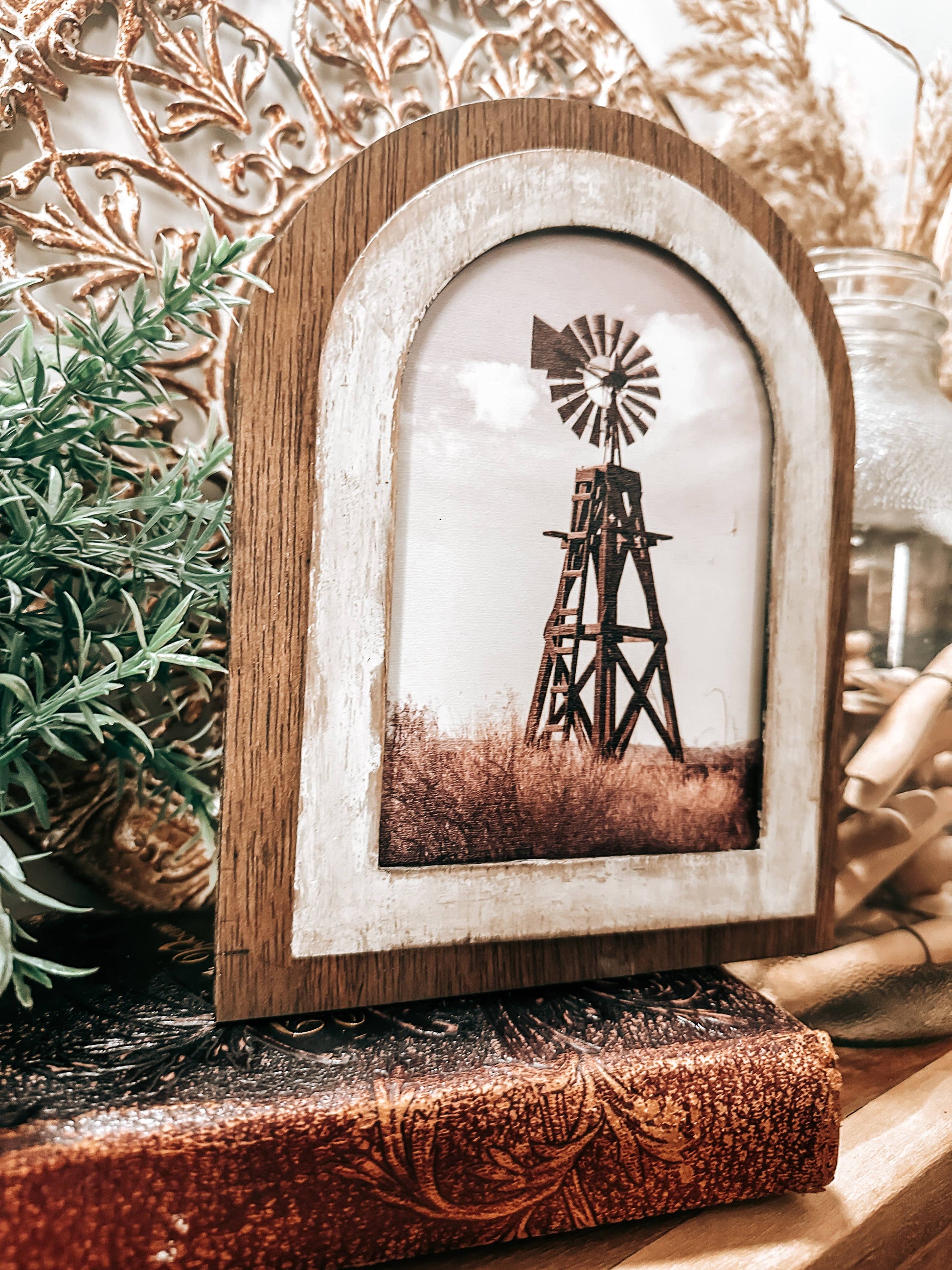 Product Details The small arched top frame is a versatile decor piece that effortlessly enhances the aesthetic of any room. Designed for styling on shelves or sitting elegantly on a tabletop, these frames can be paired with larger signs or integrated into a decor grouping for a cohesive look. Features Laser Cut Wood: Crafted from precision laser-cut wood, these frames boast intricate detailing and a layered construction that adds depth and dimension to any setting. Compact Size: Large frame measures 10" wide x 12" tall these frames are perfectly sized for propping against surfaces or hanging on walls using command strips. Lightweight and Flexible: With their lightweight design, these frames are easy to move and position, allowing for creative flexibility in your decor arrangements. Photo Quality Direct Sublimation on Sub-Board: The photo is sublimated directly onto the sub-board, resulting in vibrant colors and a long-lasting image.