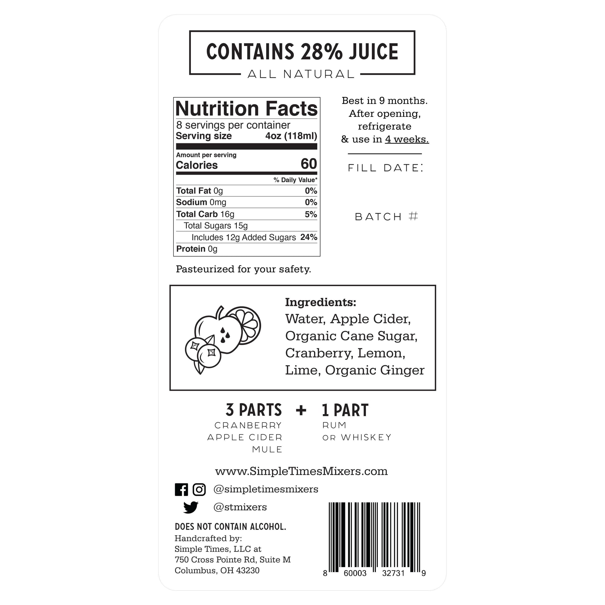 Warm up with our perfectly balanced Cranberry Apple Cider Mule. We pair that with cold-pressed cranberries and our lime & ginger mule base for a seasonal cocktail mixer that's sure to become your next favorite.
