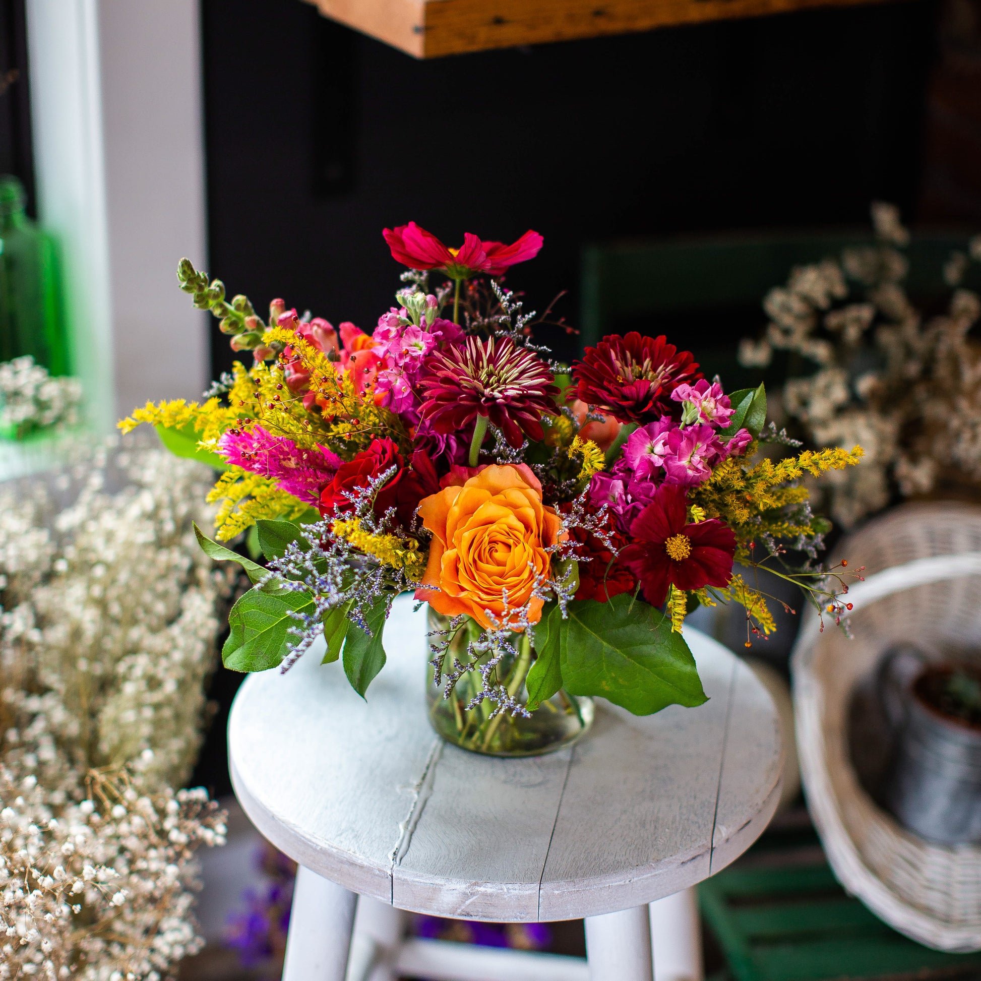 DELIVERIES: PLEASE PROVIDE A CONTACT PHONE NUMBER WHEN CHECKING OUT. We are happy to provide local delivery within a 15 mile radius of our shop for a small fee. At checkout we allow you to choose a delivery date and REQUEST a delivery time. Delivery TIME selected is only a request, not an absolute, as it is impossible for us to guarantee an exact time of delivery due to the nature of our business. Delivery time is guaranteed between 12-4pm unless otherwise communicated by us (like in the instance of flower holidays Valentine's Day and Mother's Day, etc.). IF RECIPIENT IS NOT HOME, the recipient will be notified of attempted delivery and IF WEATHER FORECAST PERMITS, arrangement will be left in a safe spot outside the home. Person will be notified of the location of the delivery. IF WEATHER DOES NOT PERMIT the arrangement being left outside, recipient will be notified of attempted delivery and arrangement will be brought back to our shop and available for pickup. WE WILL NOT DELIVER TWICE. We are not responsible for the recipient not being available to receive the arrangement at the time of delivery. If delivery is attempted to a workplace and the recipient is not available to receive at the time of delivery, arrangement may be left with the front desk or a coworker in close proximity. If delivery is attempted to a workplace and it is closed, recipient will be contacted and notified that the arrangement will be available for pickup at our store. For hospital deliveries and apartment deliveries, we MUST know the room number or apartment number. If recipient lives in a gated community and gate code is not provided, we will attempt to contact them for the gate code but not wait for more than 3 minutes after attempted contact. If they do not respond with the code, we will let them know the arrangement will be available for pickup at our shop.
