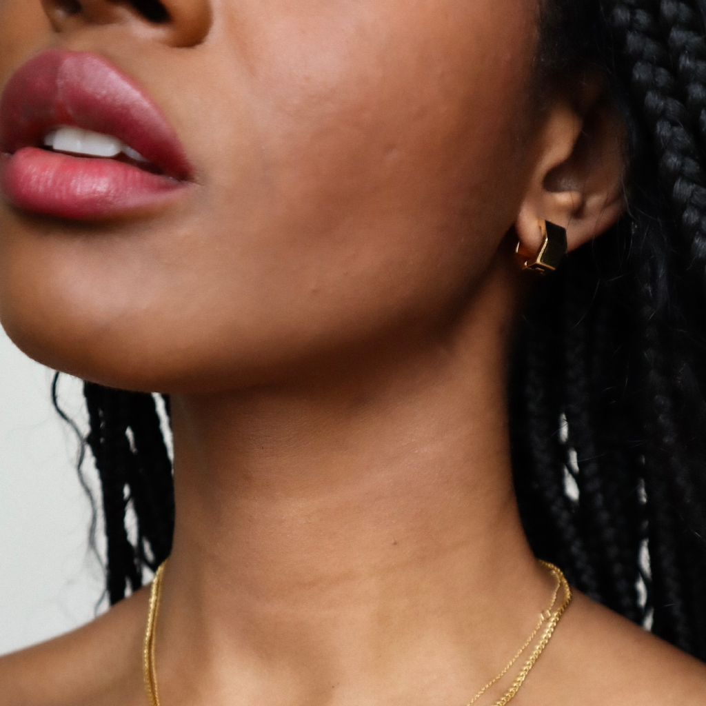 Meet your new go-to hoops. Our Hexagon Huggies bring a modern twist to a classic style with their sleek geometric shape. Comfortable and lightweight, they’re designed for all-day wear and pair effortlessly with everything from casual looks to dressed-up layers. At 11 mm tall and 7 mm thick, they’re just the right size to make a statement while still staying subtle enough for everyday.