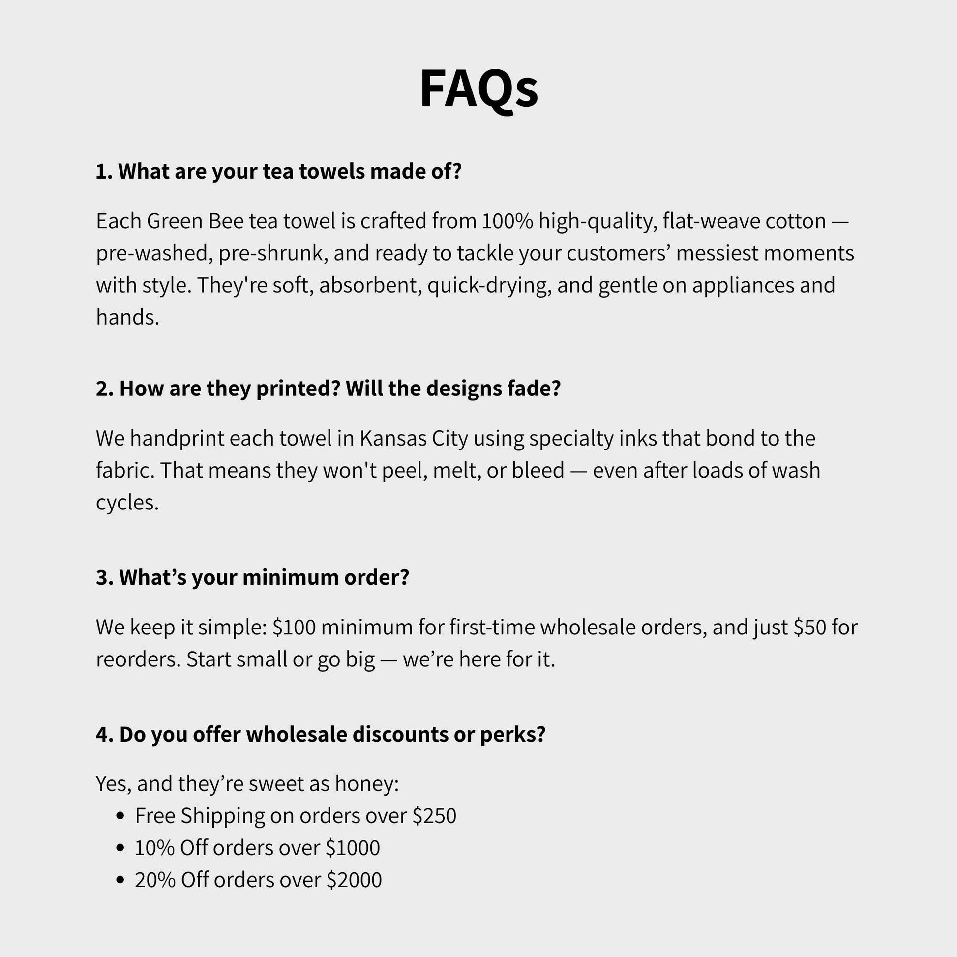 Green Bee Tea Towels was founded by Rena in 2015 to provide products that are not only fun and beautiful but that are also functional and durable.