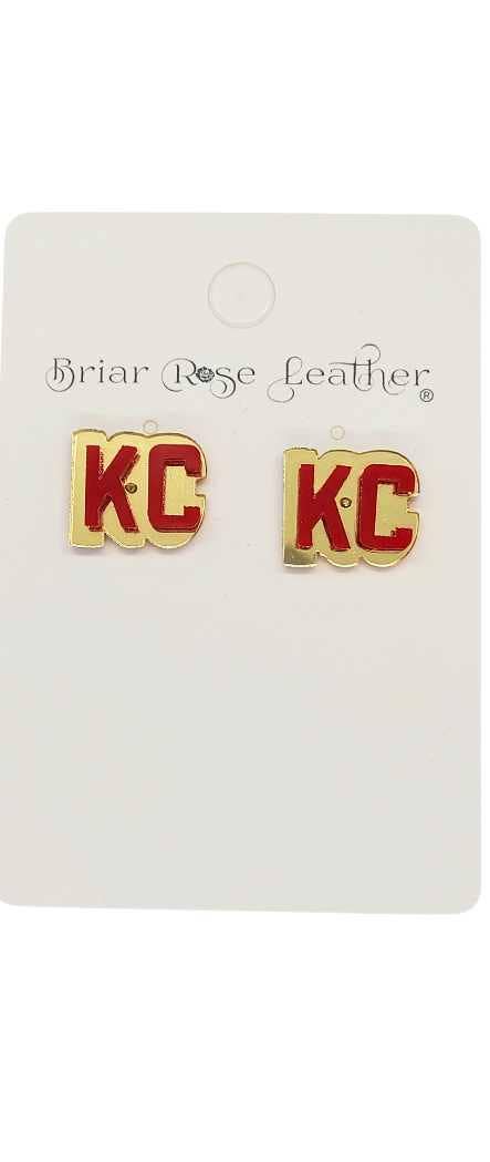 KC Earrings, Chiefs earrings, KC stud earrings, KC football earrings, KC, Acrylic earrings, Red and Gold earrings, stud earrings, Kansas City Chiefs earrings.