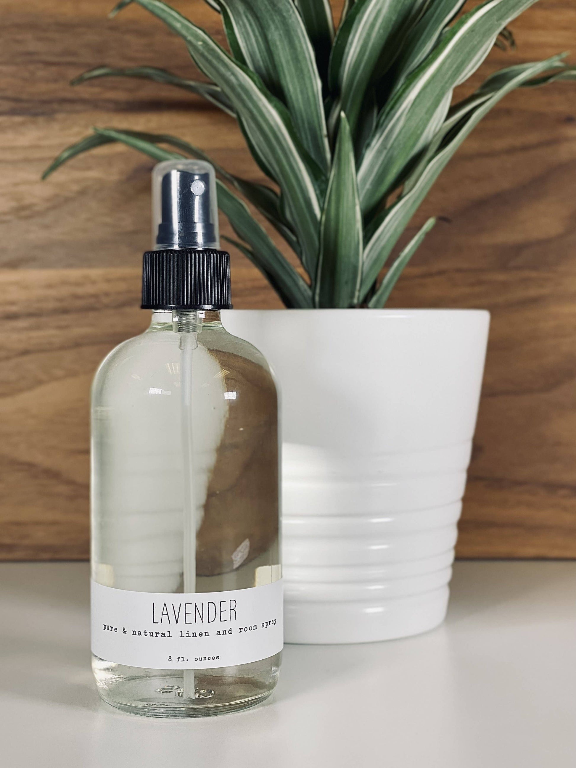 We package our 8 Ounce Linen & Room Sprays in clear glass bottles with black spray tops.