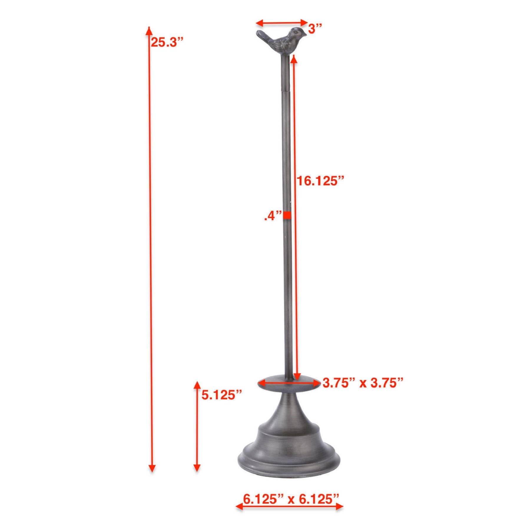 - Bird finial can be removed to slide toilet paper roll onto base