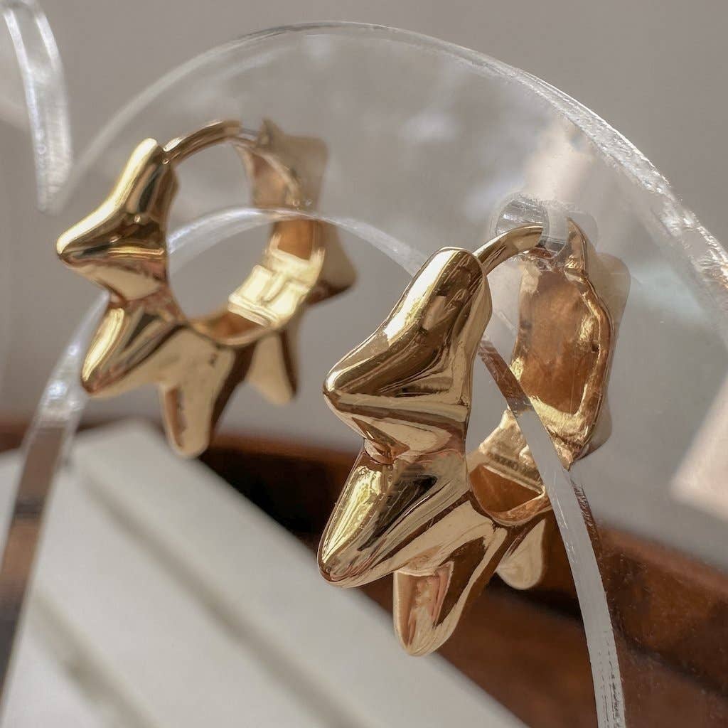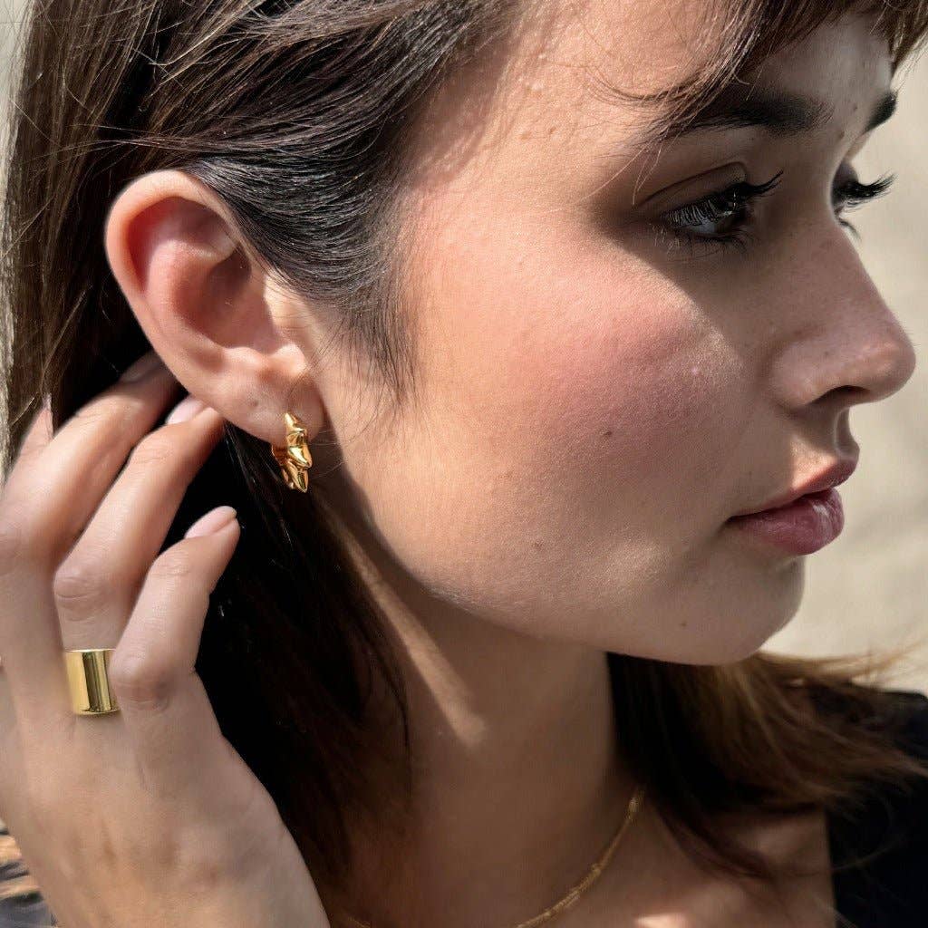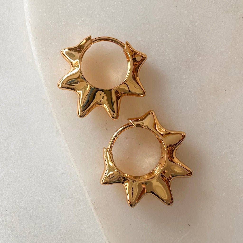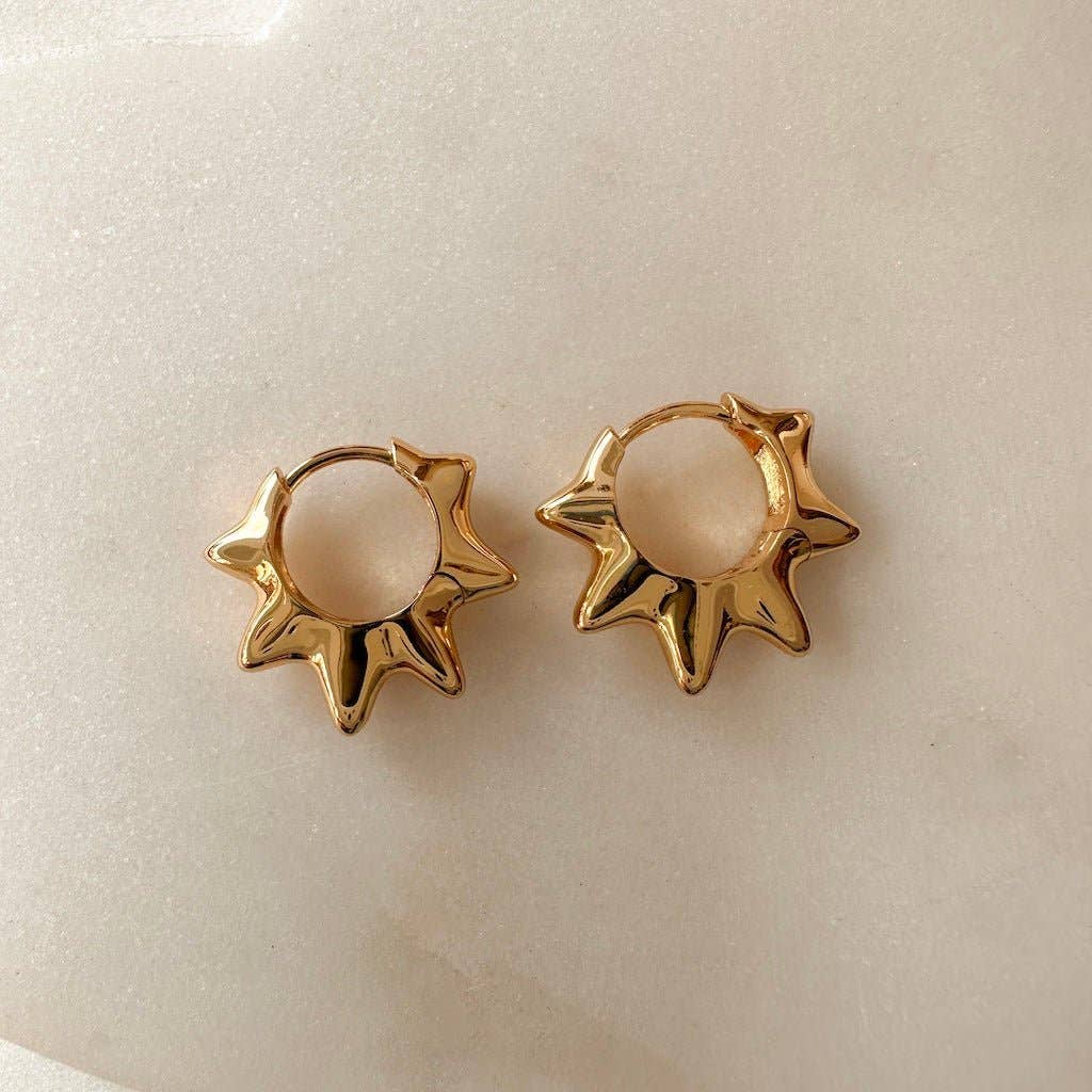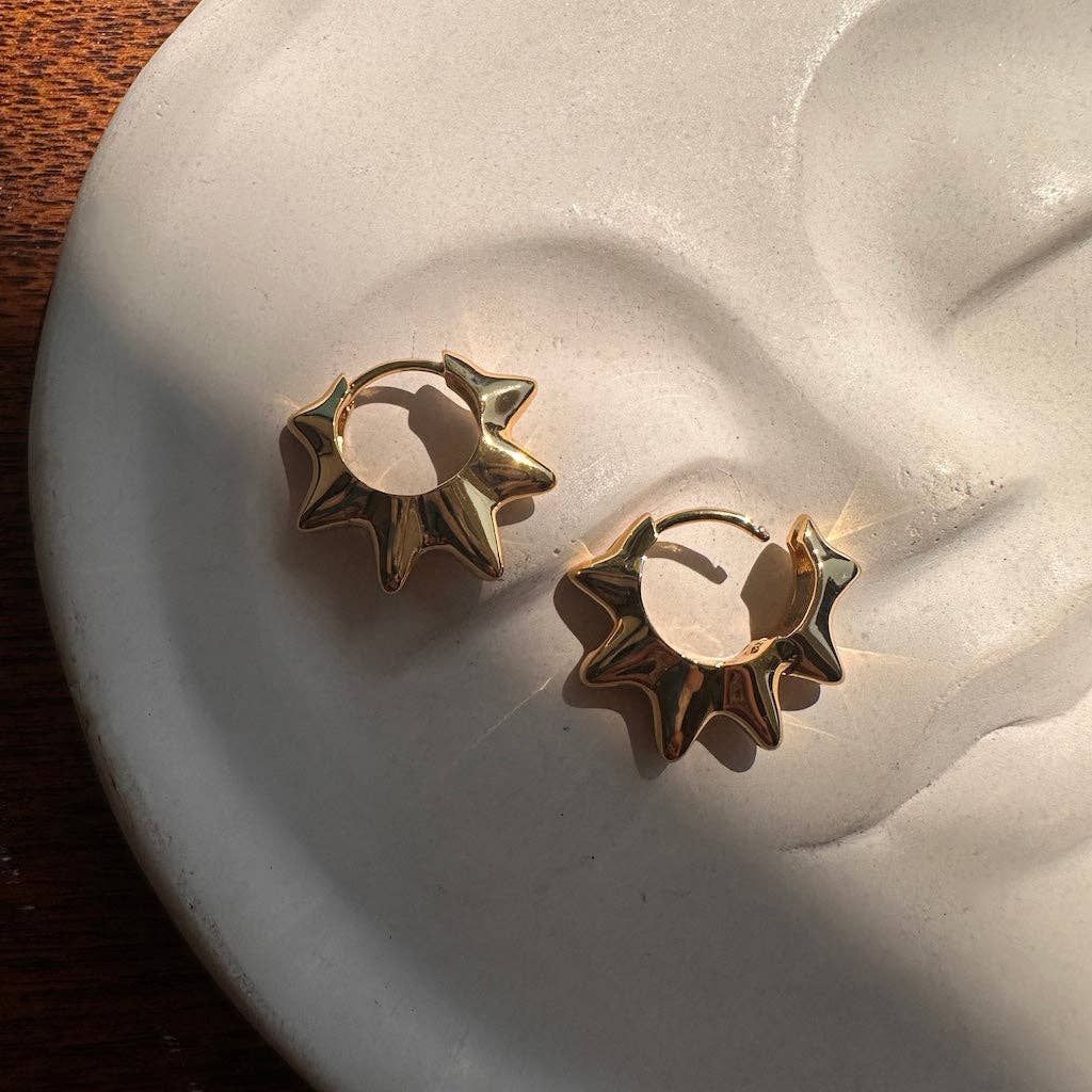 Gently curved spear-like drops give these huggie hoops a bold, sculptural feel - edgy, yet polished. Designed to move with you, they catch the light just enough to add a sleek shimmer to your everyday look. Effortless to wear, striking to style. Hoops measure 17mm.
