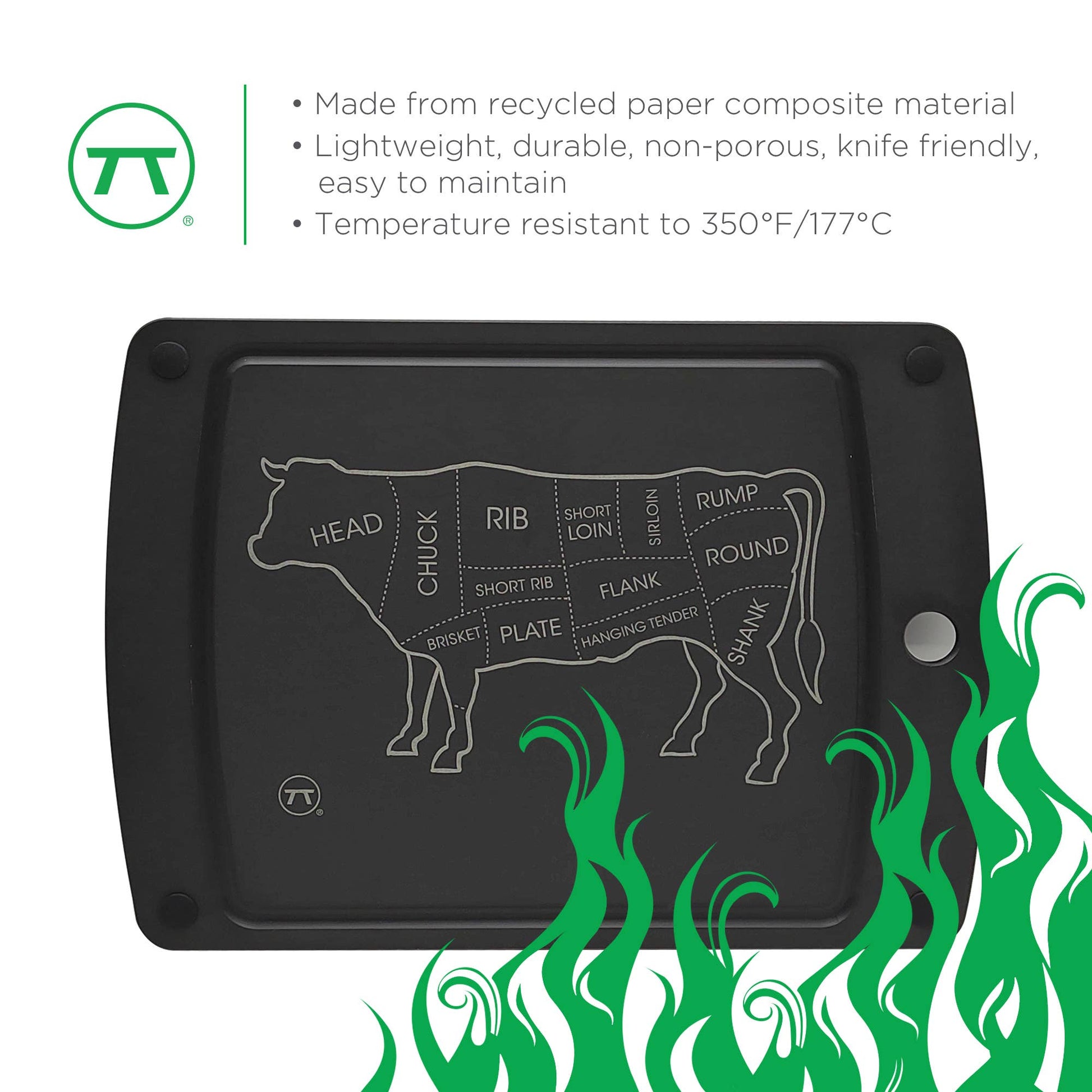 -SUSTAINABLE- The grill prep tray is made from a recycled paper composite material making it eco-friendly. Conveniently heat resistant to 350 F and 177 C to avoid warping