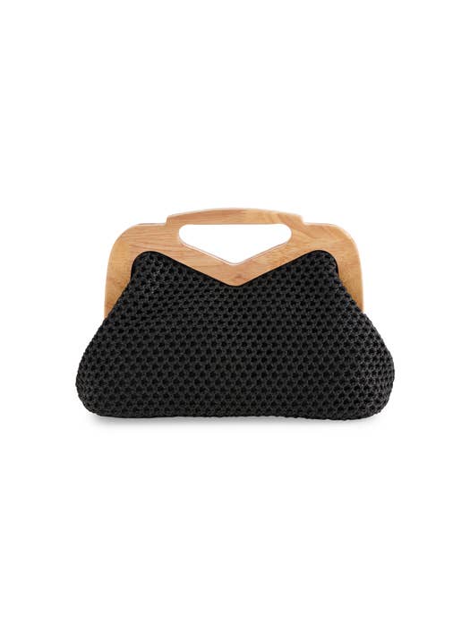 Polyethylene; Wood Handle; Gold Hardware; Detachable Cross-Body Chain; Magnetic Frame Closure. The Rio Top Handle Clutch Is Where Timeless Charm Meets Bold Personality. Featuring A Unique Wooden Frame Top Handle Paired With A Textured Crochet Body, This Clutch Exudes Relaxed Sophistication. Available In Classic Neutrals and Vibrant Hues, The Rio Transitions Effortlessly From A Laid-Back Brunch To A Sunset Soirée. With A Detachable Chain Strap, It Offers Hands-Free Styling While Staying Polished and Chic.
