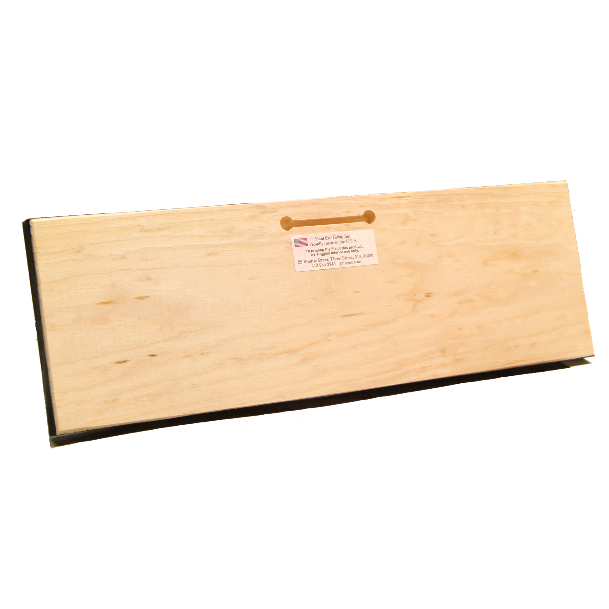 We craft our signs from solid pine. 17" Wide x 5.5" Tall x 3/4" thick. Made in the USA.