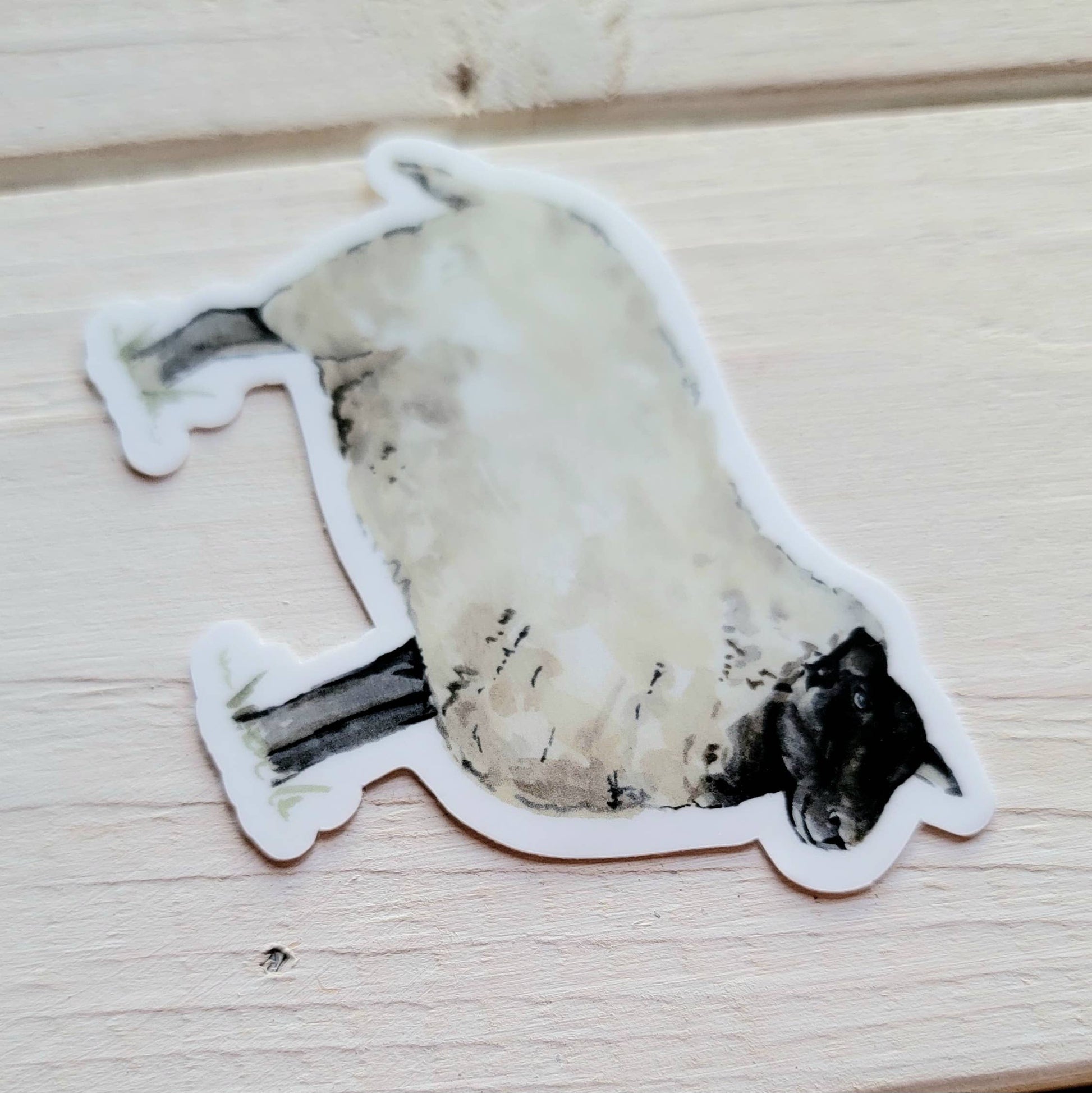 Sheep sticker is a high quality waterproof vinyl print of my original art. Sticker measures 3" at it's longest point.
