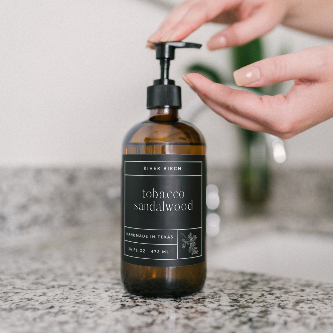 Tobacco Sandalwood -16oz Amber Glass Soap-Handmade-Hand Wash